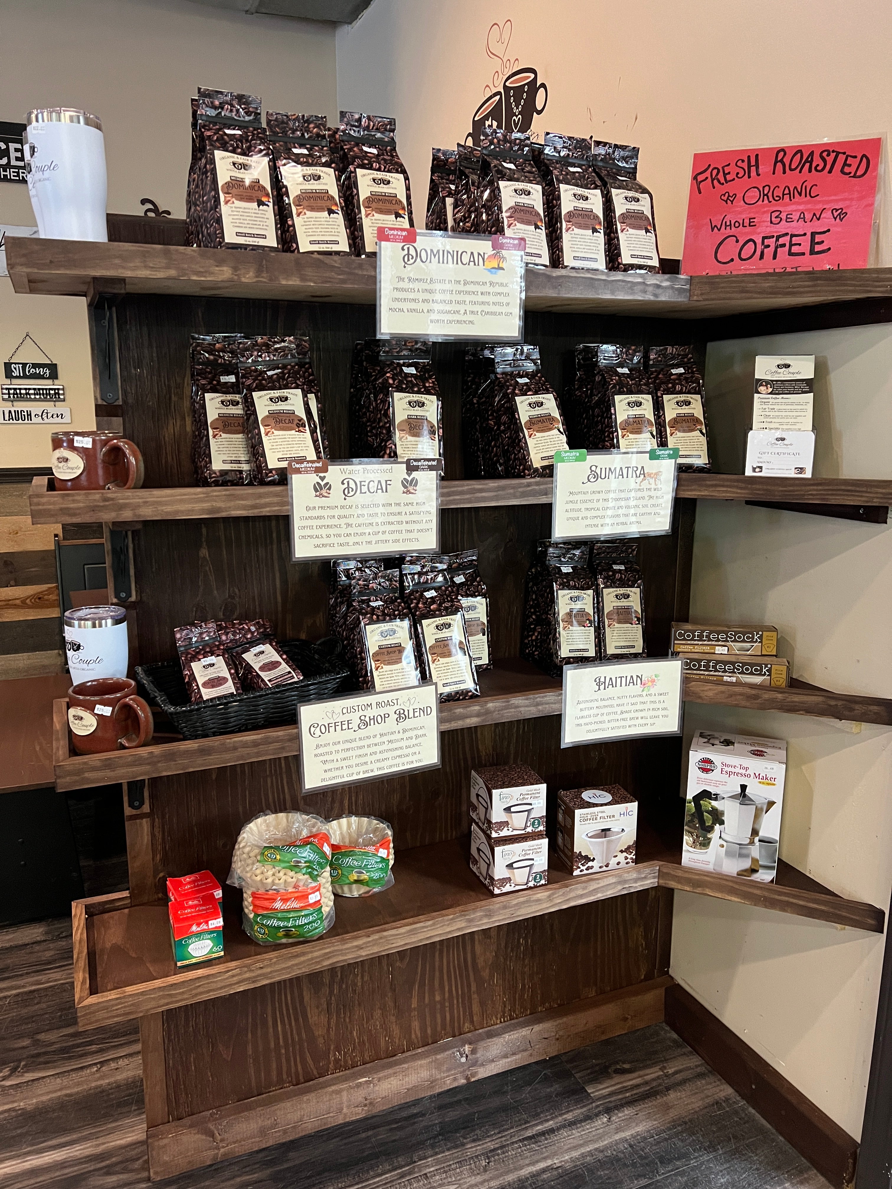 If you're local, come experience the freshness and quality of our coffee in all of your favorite coffee drinks at our Entirely Organic Coffee Shop. Open Friday & Saturday 9-3. We are nestled inside Back To The Best Country Store. Also offering smoothies, Rishi Tea and more...
